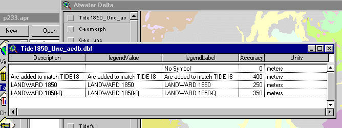 Figure 4 is a display in ArcView of a portion of the digital data with the arcs symbolized to represent the uncertainty indicated by Atwater in the map legend and report.