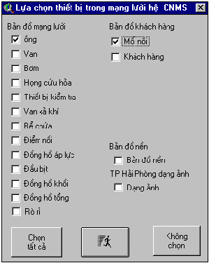 CNMS server runs in Windows NT environment, the clients run in Windows 95/98 or Windows NT. The database is implemented using Microsoft SQL Server. The GIS interface is based on ArcView GIS 3.1. CNMS is for most part translated into Vietnamese.