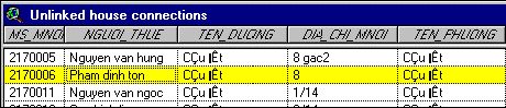 For cases when the ID information is not found on the AutoCAD drawing CNMS displays a table of unlinked house connections (i.e. BARS customer records with no coordinates). The user establishes a connection by first selecting a record from the table and then pointing on a pipe end in the view.
